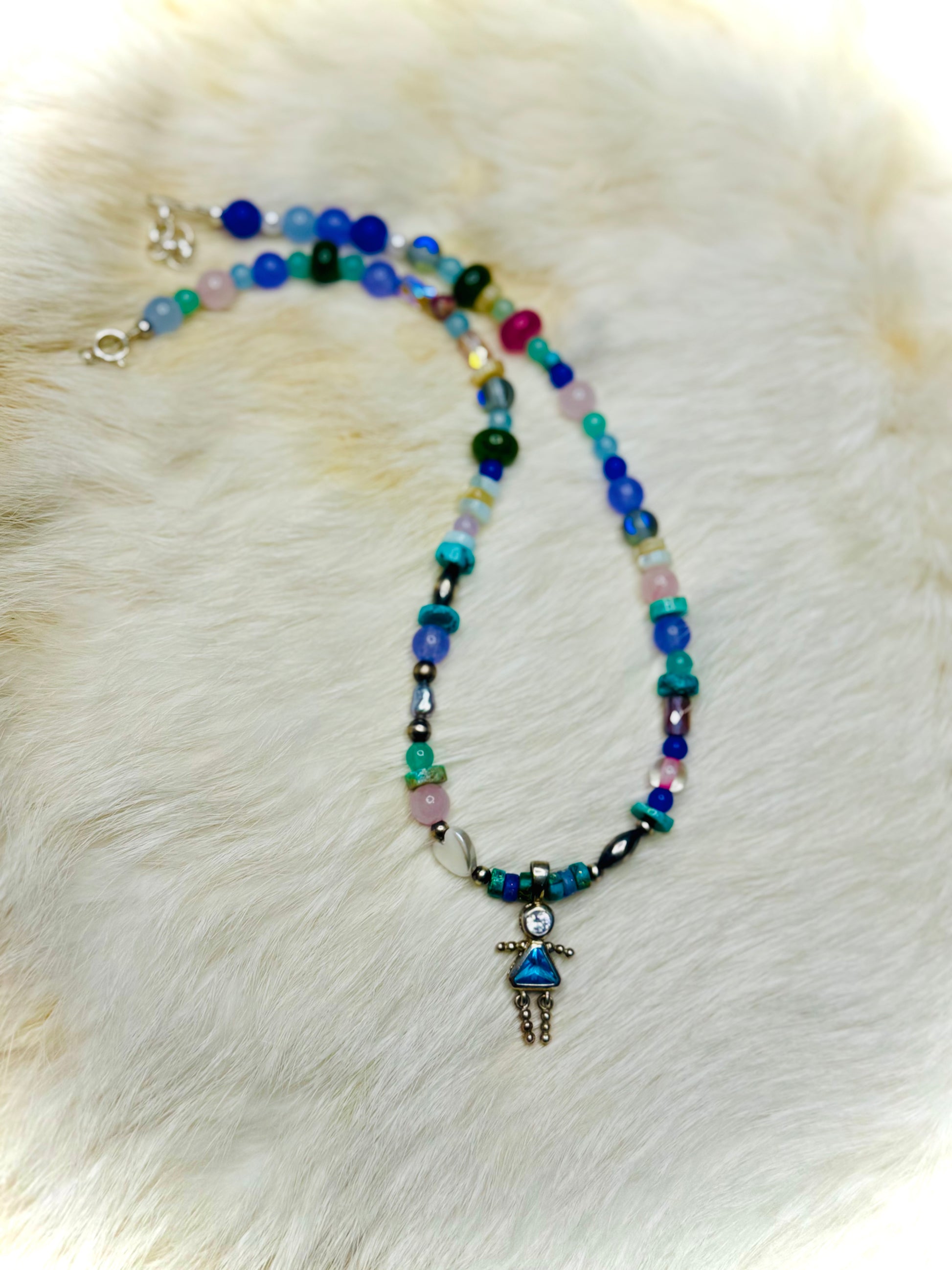 vintage blue lady sterling silver pendant