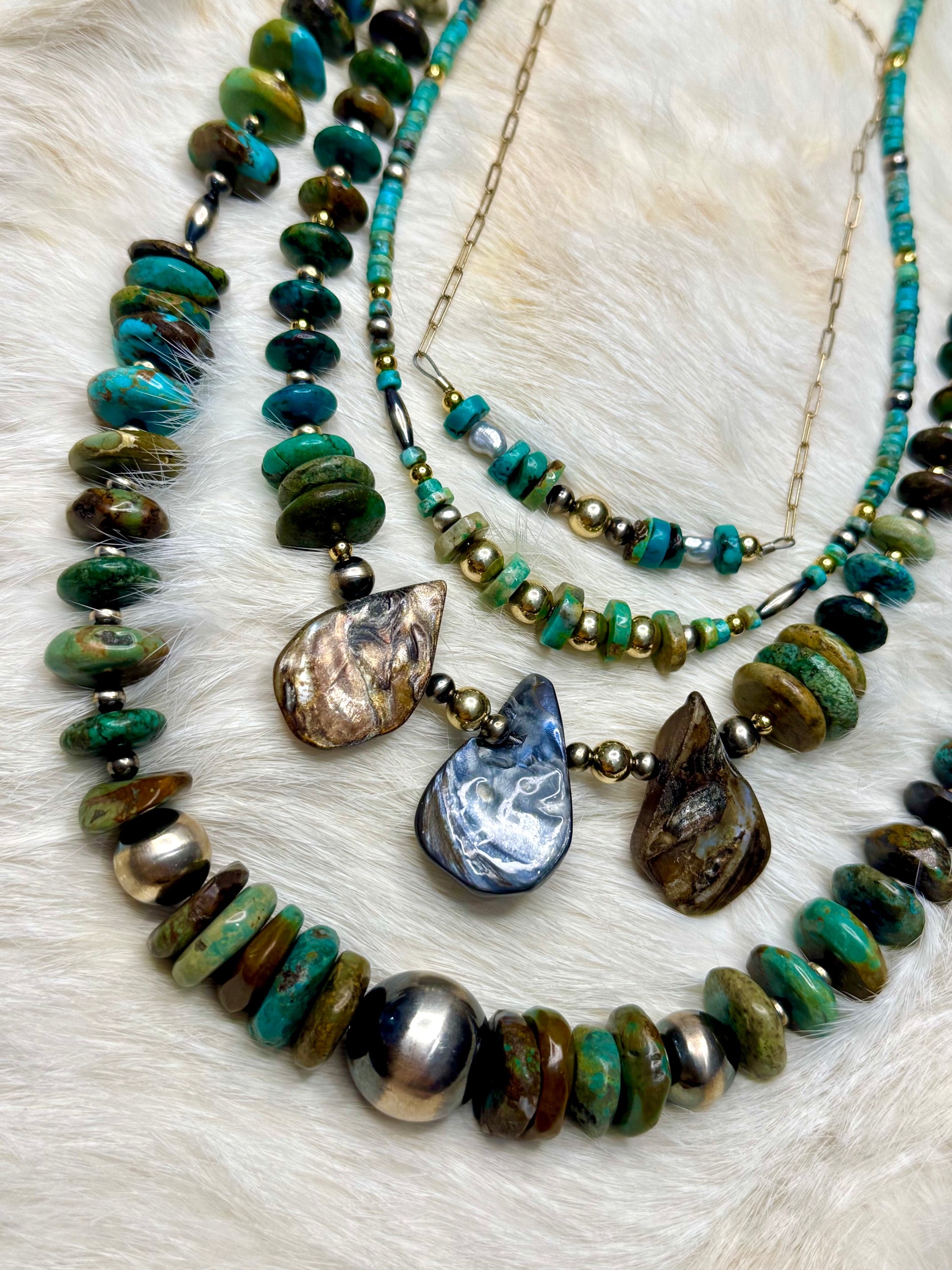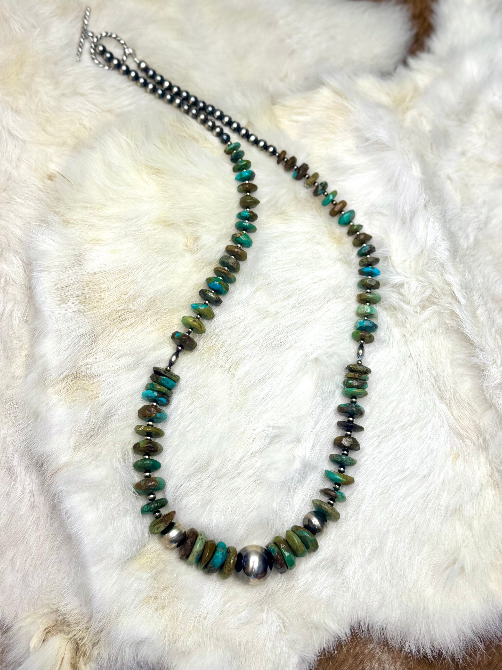 Hand strung Natural Turquoise and Sterling Silver beads.